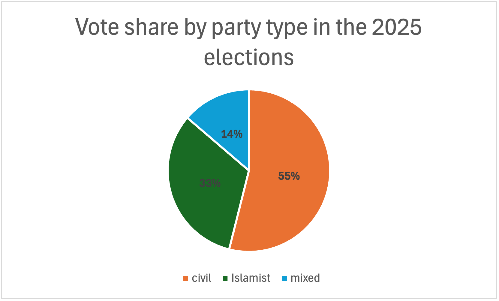 Yet this most recent election has altered this trend. Civil forces’ boycott of the 2025 elections via a large campaign led by Iraqi influencers and intellectuals, the failure of civil and Tishreeni representatives in the 2021 parliament, and the success of experienced Islamist parties in waging a campaign to demonize Tishreenis and its civil forces all led to non-Islamist parties losing their gains from the 2021 parliament, down from 57% to 44.6% in the upcoming parliament.